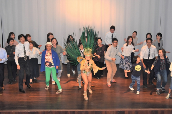No final do evento, os participantes ficaram fascinados por uma dançarina, que deu uma aula improvisada e cheia de energia de como sambar. Pensando de antemão na timidez clássica dos japoneses, nós, os organizadores, estávamos nos perguntando se os participantes gostariam de participar desta aula surpresa. Mas no final, a mini micareta foi uma grande diversão.