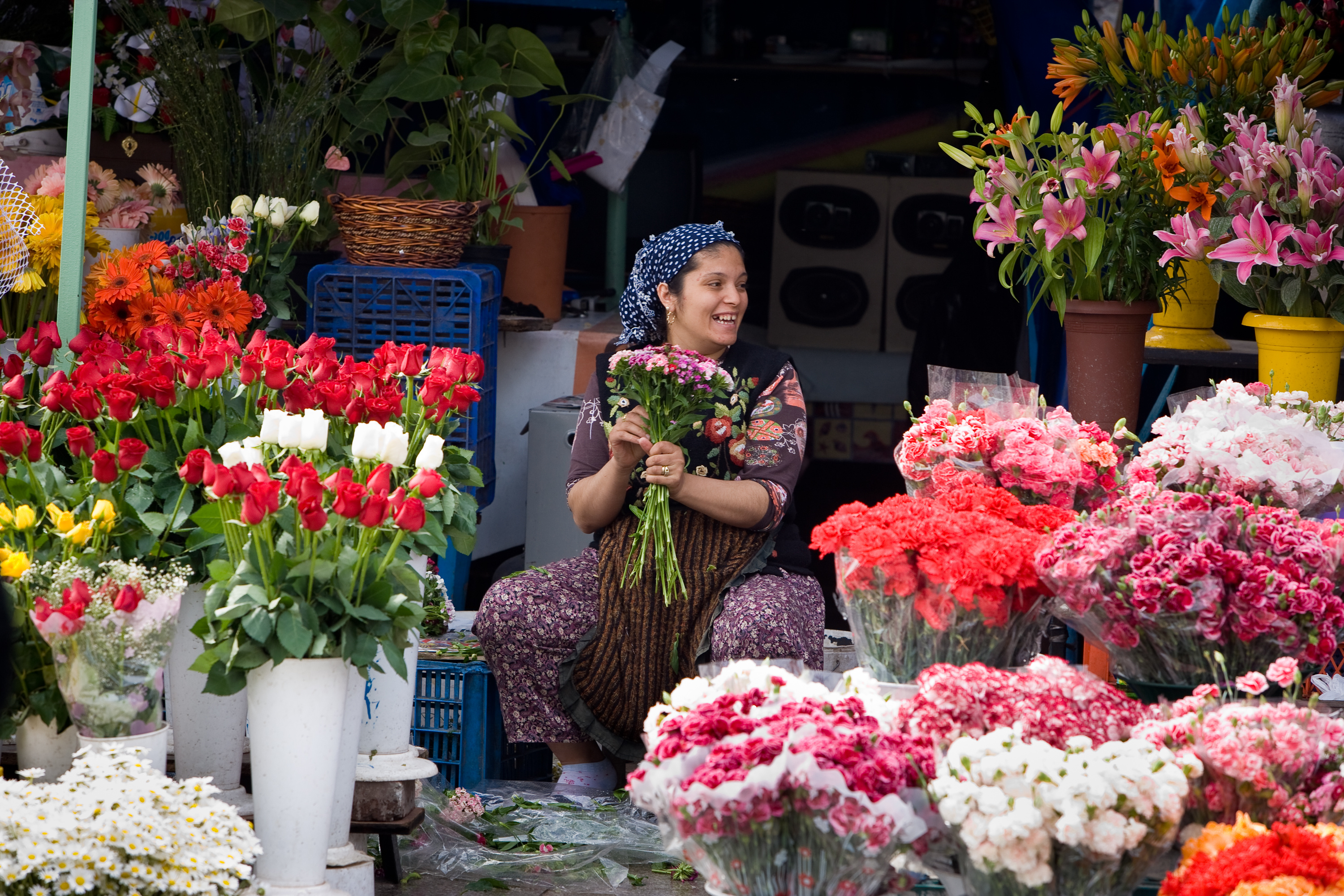A flower vendor in Istanbul, Turkey, 12 April 2006.